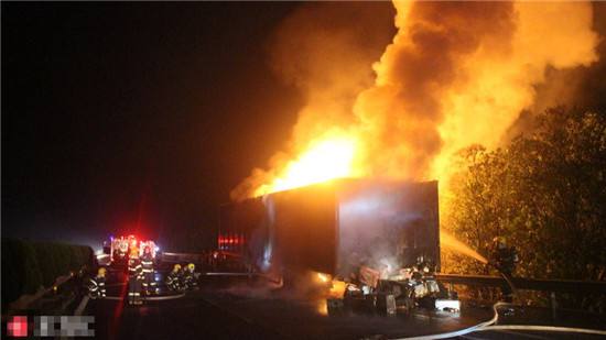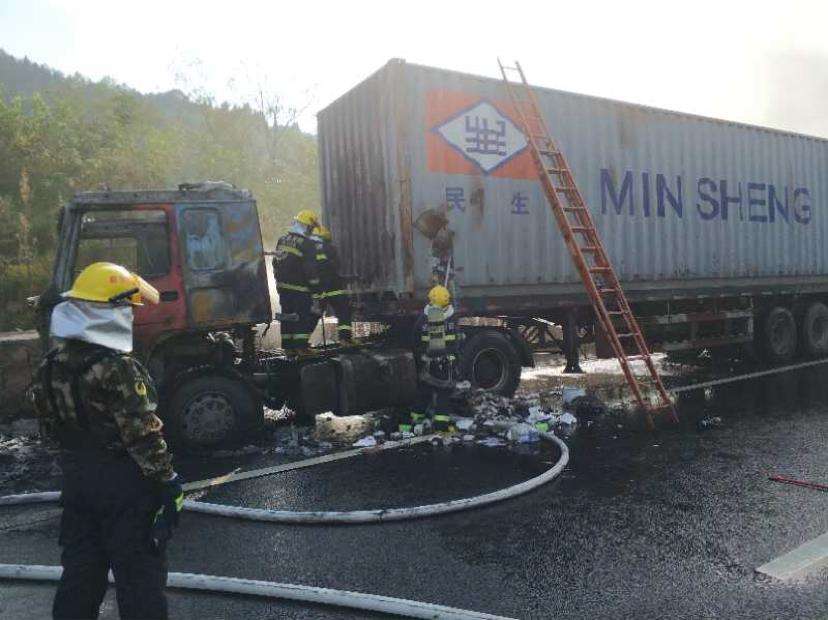 随车人员说,今天早上有雨,气温也比较低,没想到还会自燃起火。从现场看,左后侧的轮胎燃烧最为严重,6个轮胎全毁,根据判断,很有可能是轮胎摩擦导致起火。救援人员提醒,阴雨天仍然有可能发生自燃,司机朋友一定要注意车辆平时的保养维护工作,尤其是轮胎,一定要经常性认真检查。