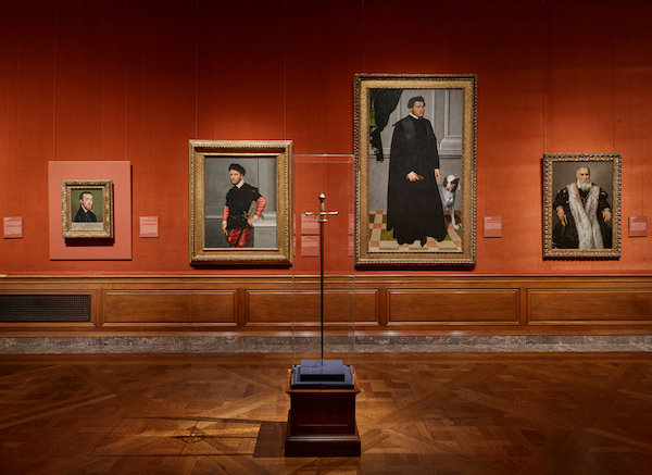 莫罗尼的另一个创新是“神圣的肖像”,目前存世已知的三件弗里克收藏博物馆首次联合展出。 这些作品打破了将宗教供养人描绘为小角色的传统,在莫罗尼的作品中供养人被放置在真实的空间中,作为世界公民出现。