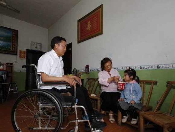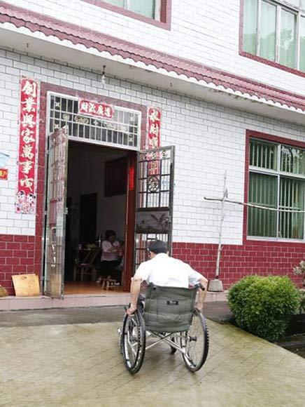 “‘轮椅哥'家就在前面。你看,穿白衣服的就是欧阳晖。”“十多年前,我在一家器材公司上班,在仓库搬运货物时,货架突然倒塌,眼看工友就要被砸伤,我将其推开时意外发生了,货架压到了我的腰椎,我也因此脊椎神经受损、两节脊柱滑脱导致下肢瘫痪。”欧阳晖向记者解释“轮椅哥”称号的由来。