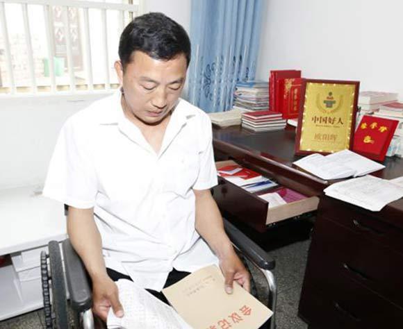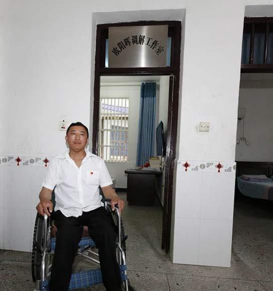 “老百姓的事就是我的事,乡亲们的幸福就是我的幸福。”闲不住的欧阳晖还肩负起了“文明劝导员”“调解员”“政策宣讲员”等职责。欧阳晖经常串东家走西家,了解和掌握村里残疾群众的基本情况,做好生活保障、就业、维权、文化等方面的咨询、服务工作,并对他们的康复进展、生活需求进行一一登记,将他们生活中的实际困难及时反映给村里或相关部门,积极联系协调政府做好残疾人管理和宣传残疾人事业等方面的工作。旁人告诉记者,欧阳晖是村里的红人,现在村里但凡有点邻里间鸡毛蒜皮、夫妻间争吵拌嘴,大家都爱去他那坐坐,听听他的意见。“这是大家信任我,才会找我来聊聊天,询问我的意见。我很希望能帮助到大家,所以平时我会看关于法律的书籍,我可以运用法律知识来劝导大家,并告知他们让他们知法懂法。”欧阳晖说道。