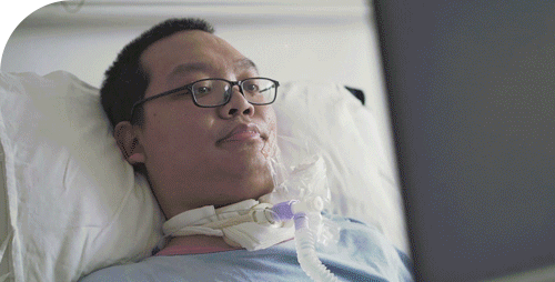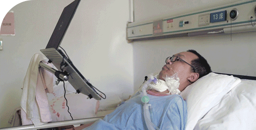 胡荣俊今年才36岁,全身瘫痪,靠呼吸机辅助呼吸。他不能下床,也不能说话,只能通过眼控仪跟人简短交流,他说他想回家,他想见见他的家人。