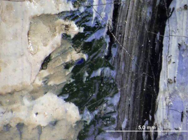 X光与自然光下呈现卡米尔右侧曾破洞处
