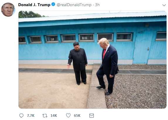 【环球网报道】距离6月30日“金特会”已过去两天,美国总统特朗普还在“回味”。就在3个小时前,特朗普在推特上啥都没说,只是发了一张图。