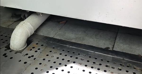 三次分拣完成后,湿垃圾就流转到了专门处理湿垃圾的“大家伙体内”。当有新的果蔬垃圾送来,张兆福便会将其投入“大家伙”中,机器轰鸣几分钟,便能听到流水排入下水道的声音。