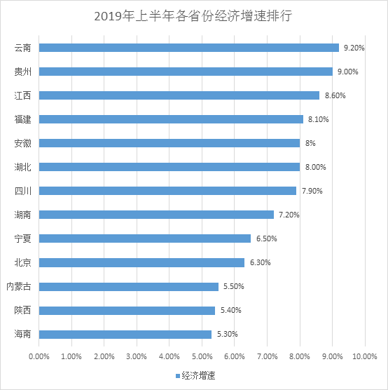 云南和贵州经济继续保持高增长,是目前仅有的增速在9.0%及以上的省份。其中,云南上半年增速为9.2%,超全国平均线2.9个百分点,暂列第一。