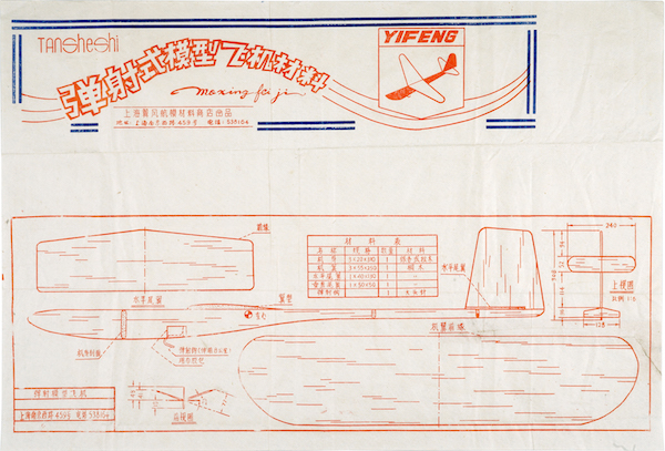 弹射式模型飞机材料,设计:佚名,翼风航模材料商店,约1980年代