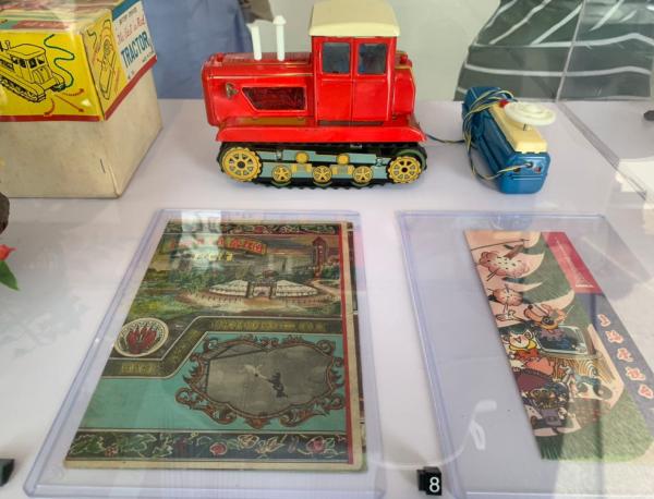展品中有一台1970年代出品的红色的红灯牌收音机。“红灯牌,从名字就可以大约知道这个牌子的时代,不过‘红灯牌’多数是黑色的,这款红色的比较难得,是‘乡村特别版’。这款区别在于声音大、可收的波段多。红灯牌收音机现在网上还有卖,只是在义乌制造了。” 姜庆共介绍说,“做航模,翼风航模材料商店都知道的,这家店在南京路开了近60年,但2011年歇业了。”