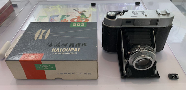 但海鸥牌照相机则是另一个故事。最早上海产的照相机是1958年的58-1型,因为当时没有外国产品来源,就自己研发了上海牌相机,当然也是模仿了西方的一些设计。但因为上海牌产品多是为了出口换取外汇,但国际上有规定,不能以地名来作为品牌商标,所以换成寓意“乘风破浪”的海鸥牌,展览中的一台203型号的海鸥牌相机大约是60年代左右生产的。