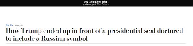 特朗普参加演讲时,背后出现了错误的总统徽章
