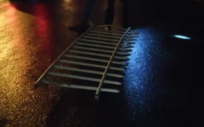 7月23日21时许,在(黑龙江省哈尔滨市)香坊区公滨路24号门前路段,一辆福特福克斯轿车撞上11节隔离带之后,飞出的隔离带砸中一辆大挂车和一辆出租车,所幸没有造成人员伤亡。 22时许,记者在现场看到,白色福特轿车横在路上,车头受损严重,车下还轧着几节隔离带,被撞飞的11节隔离带散落到处都是。